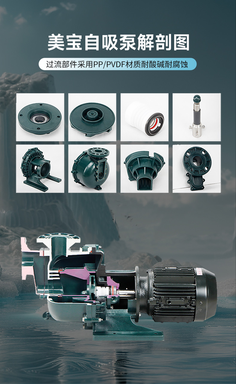 美寶MK自吸泵全新第三代可空轉(zhuǎn)耐酸堿自吸泵:全新第三代可空轉(zhuǎn)耐酸堿自吸泵:1.無(wú)水可空轉(zhuǎn)自吸式耐酸堿泵,根據(jù)冷卻箱的大小,無(wú)水可空轉(zhuǎn);2.選用耐腐蝕原材料,耐酸堿、耐強(qiáng)堿、抗腐蝕性,材質(zhì)有FRPP 及PVDF;3...