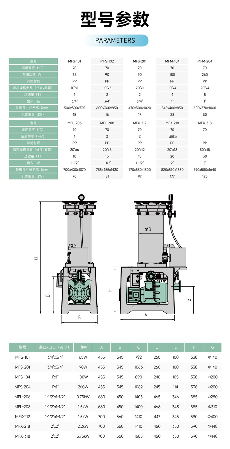 MFL- 206- 1- F- U- N- C- O- J- X- MK① ② ③ ④ ⑤ ⑥ ⑦ ⑧ ⑨ ⑩ ?①機(jī)型編號:MFL②形式編號:206 208③泵浦馬力:1-1HP 2-2HP 3-3HP 5-5HP④泵浦材質(zhì):C-CFRPP F-FRPP A-CPVC P-PVDF⑤U-出入口由任式 H-出...